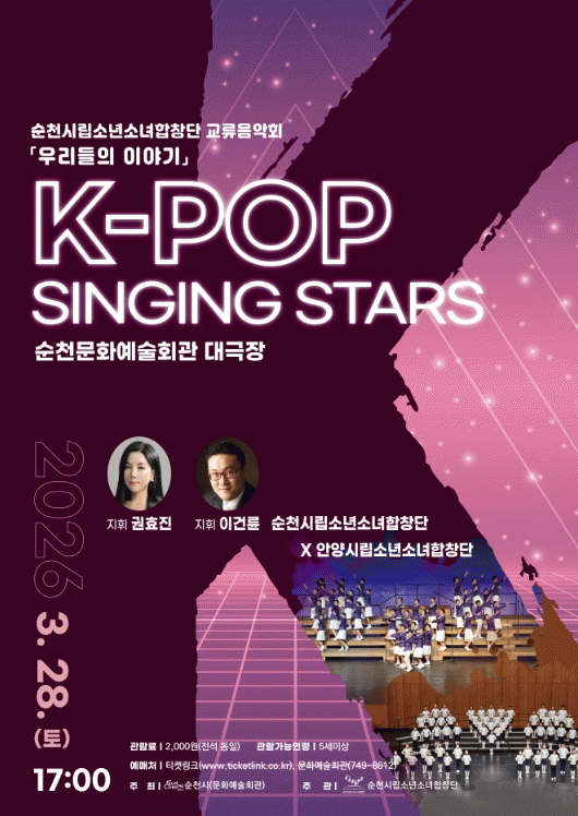 [¹Ìµð¾îÀü³² ÀÓ¼º¿Ï ±âÀÚ] ¼øÃµ½Ã´Â ¾È¾ç½Ã¸³¼Ò³â¼Ò³àÇÕâ´Ü°ú ±³·ùÀ½¾Çȸ '¿ì¸®µéÀÇ À̾߱â'¸¦ ¿À´Â 28ÀÏ ¿ÀÈÄ 5½Ã¿¡ ¼øÃµ½Ã¹®È¿¹¼úȸ°ü ´ë±ØÀå¿¡¼ °³ÃÖÇÑ´Ù. À̹ø °ø¿¬Àº û¼Ò³â ÇÕâ´Ü °£ ±³·ù¿Í ¿ìÁ¤À» ³ª´©±â À§ÇØ ¸¶·ÃµÈ ¹«´ë·Î¡¦
