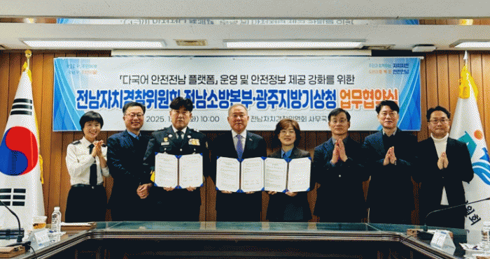 [¹Ìµð¾îÀü³² Á¦°¥´ëÁ¾ ±âÀÚ]Àü³²ÀÚÄ¡°æÂûÀ§¿øÈ¸´Â Àü³²¼Ò¹æº»ºÎ, ±¤ÁÖÁö¹æ±â»óû°ú Áö³ 23ÀÏ ¾÷¹«Çù¾àÀ» ÇØ ¿Ü±¹ÀÎÀÇ ¾ÈÀüÇÑ »ýȰÀ» º¸È£Çϰí Áö¿øÇÏ´Â ´Ù±¹¾î ¾ÈÀüÀü³² ¾Û ¿î¿µ°ú ¾ÈÀüÁ¤º¸ Á¦°øÀ» ÇÑÃþ °ÈÇϱâ·Î Çß´Ù. À̹ø Çù¾à¡¦