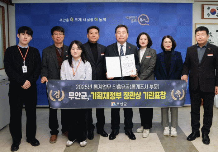 [¹Ìµð¾îÀü³² ±èÆÇ±¹ ±âÀÚ]¹«¾È±ºÀº ±¹°¡µ¥ÀÌÅÍó°¡ ÁÖ°üÇÏ´Â Åë°èÁ¶»ç¿¡¼ Åë°è¾÷¹« ¹ßÀü¿¡ ±â¿©ÇÑ °ø·Î¸¦ ÀÎÁ¤¹Þ¾Æ ¡®2025³â Åë°è¾÷¹« ÁøÈïÀ¯°ø¡¯ ºÎ¹® ºÎÃѸ® °â ±âȹÀçÁ¤ºÎÀå°ü ±â°üǥâÀ» ¼ö»óÇß´Ù°í ¹àÇû´Ù. À̹ø Æ÷»óÀº Àü±¹»ç¾÷ü¡¦
