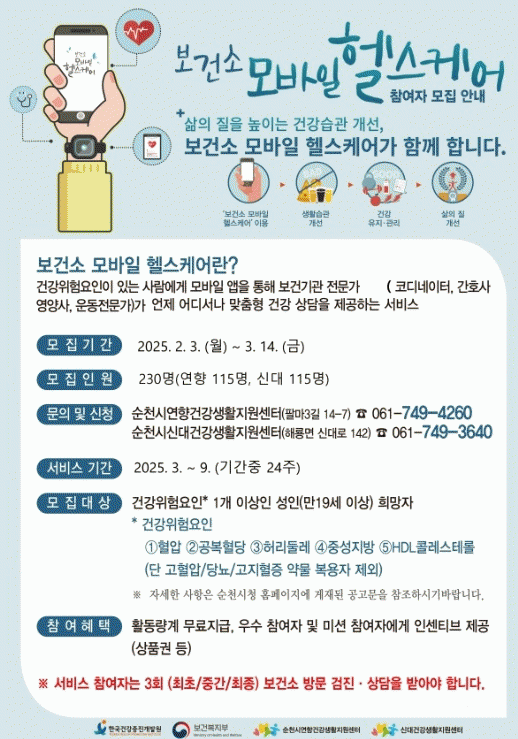 [¹Ìµð¾îÀü³² ÀÓ¼º¿Ï ±âÀÚ]¼øÃµ½Ã´Â Á¤º¸Åë½Å±â¼ú(ICT) ±â¹Ý °ø°øÇü °Ç°°ü¸®¼ºñ½ºÀÎ ¡®2025³â º¸°Ç¼Ò ¸ð¹ÙÀÏ ÇコÄÉ¾î »ç¾÷¡¯ Âü¿©ÀÚ¸¦ ¿À´Â 3¿ù 14ÀϱîÁö ¸ðÁýÇÑ´Ù°í ¹àÇû´Ù ¸ð¹ÙÀÏ ÇコÄɾî´Â °Ç°À§Çè¿äÀÎÀÌ ÀÖ´Â »ç¶÷¿¡°Ô ½º¸¶Æ®±â¡¦