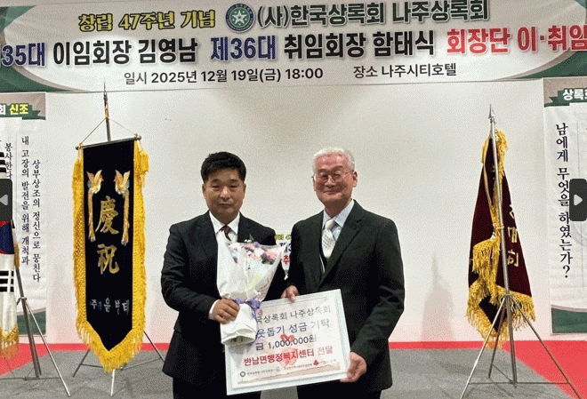 [¹Ìµð¾îÀü³² Á¦°¥´ëÁ¾ ±âÀÚ](»ç)Çѱ¹»ó·Ïȸ ³ªÁÖ»ó·Ïȸ´Â ⸳ 47ÁÖ³âÀ» ¸Â¾Æ Áö³ 19ÀÏ ³ªÁֽà ¹Ý³²¸é Áö¿ª»çȸº¸ÀåÇùÀÇü¿¡ ¼º±Ý 100¸¸ ¿øÀ» ±âŹÇß´Ù°í ¹àÇû´Ù. À̹ø ±âŹÀº Á¦35´ë ±è¿µ³² ȸÀå ÀÌÀӽİú Á¦36´ë ÇÔÅÂ½Ä È¸Àå ÃëÀӽĿ¡¡¦