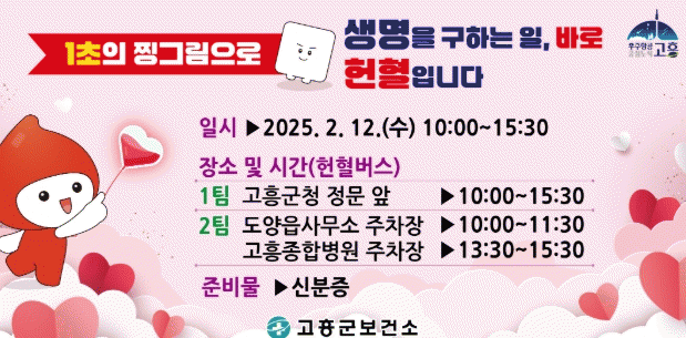 [¹Ìµð¾îÀü³² Á¦°¥´ëÁ¾ ±âÀÚ]°íÈﱺ º¸°Ç¼Ò´Â ´ëÇÑÀû½ÊÀÚ»ç ±¤ÁÖ¡¤Àü³² Ç÷¾×¿ø°ú ÇÔ²² ¿À´Â 2¿ù 12ÀÏ ¿ÀÀü 10½ÃºÎÅÍ ¿ÀÈÄ 3½Ã 30ºÐ±îÁö °íÈﱺû Á¤¹® ¾Õ µî 3°÷¿¡¼ ¿ÃÇØ ù ¡®»ç¶ûÀÇ ÇåÇ÷ Ä·ÆäÀΡ¯À» ÃßÁøÇÑ´Ù°í ¹àÇû´Ù. °°Àº ³¯ ¿ÀÀü ¡¦