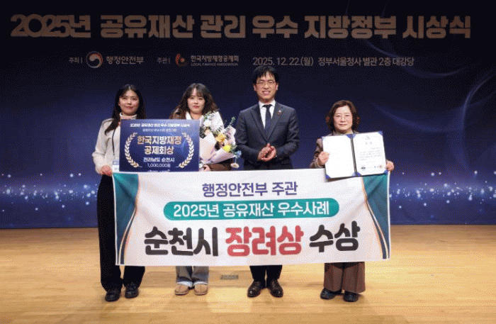 [¹Ìµð¾îÀü³² ÀÓ¼º¿Ï ±âÀÚ]¼øÃµ½Ã´Â Áö³ 22ÀÏ ÇàÁ¤¾ÈÀüºÎ ÁÖ°üÀ¸·Î Á¤ºÎ¼¿ïû»ç¿¡¼ ¿¸° ¡®2025³â °øÀ¯Àç»ê ¿ì¼ö Áö¹æ´Üü ½Ã»ó½Ä¡¯¿¡¼ °øÀ¯Àç»ê ¿ì¼ö»ç·Ê °æÁø´ëȸ ºÎºÐ ¡®Àå·Á»ó¡¯À» ¼ö»óÇß´Ù°í ¹àÇû´Ù. ¼øÃµ½Ã´Â ¾Õ¼ Áö³ 11¿ù Á¤¡¦