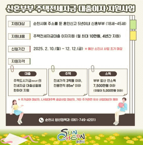 [¹Ìµð¾îÀü³² ÀÓ¼º¿Ï ±âÀÚ]¼øÃµ½Ã´Â ½ÅÈ¥ºÎºÎ û³âµéÀÇ Áְźñ °æ°¨À» À§ÇØ ¡®½ÅÈ¥ºÎºÎ ÁÖÅÃÀü¼¼ÀÚ±Ý ´ëÃâÀÌÀÚ Áö¿ø»ç¾÷¡¯ ½Å±Ô ´ë»óÀÚ¸¦ ¿À´Â 10ÀϺÎÅÍ ¸ðÁýÇÑ´Ù°í ¹àÇû´Ù. ½ÅÈ¥ºÎºÎ ÁÖÅÃÀü¼¼ÀÚ±Ý ´ëÃâÀÌÀÚ Áö¿ø»ç¾÷Àº ¼øÃµ½Ã¿¡ °ÅÁÖÇϴ¡¦