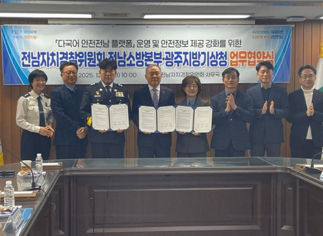 [¹Ìµð¾îÀü³² Á¦°¥´ëÁ¾ ±âÀÚ]Àü³²¼Ò¹æº»ºÎ´Â ¿Ü±¹Àΰú µµ¹Î ¸ðµÎ°¡ À糡¤»ç°í¡¤±â»ó À§Çè¿¡ ½Å¼ÓÈ÷ ´ëÀÀÇÒ ¼ö ÀÖµµ·Ï Àü³²ÀÚÄ¡°æÂûÀ§¿øÈ¸, ±¤ÁÖÁö¹æ±â»óû°ú ¾÷¹«Çù¾à(MOU)À» ü°áÇϰí, ´Ù±¹¾î ¾ÈÀüÀü³² ¾ÛÀ» ÅëÇÑ ¾ÈÀüÁ¤º¸ Á¦°øÀ» ÇÑÃþ ¡¦