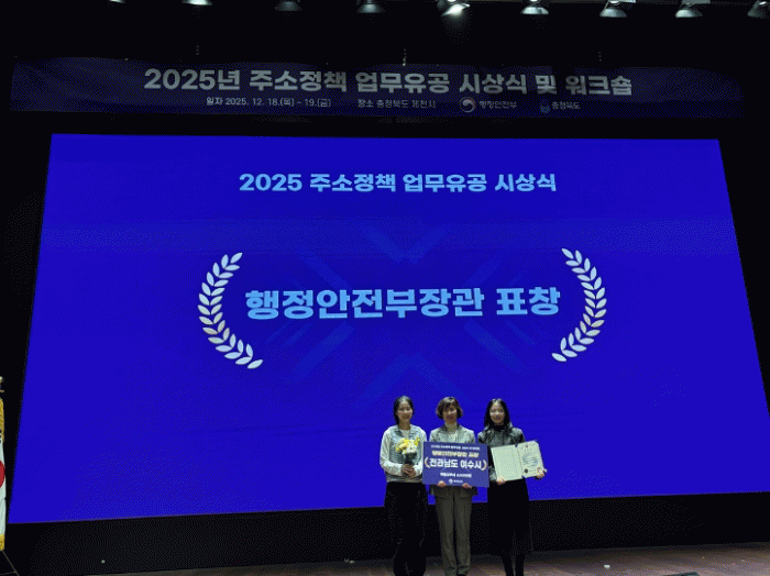 [¹Ìµð¾îÀü³² ÀüÇü¼º ±âÀÚ]¿©¼ö½Ã´Â ÇàÁ¤¾ÈÀüºÎ°¡ ÁÖ°üÇÏ´Â ¡®2025³â ÁÖ¼ÒÁ¤Ã¥ ¾÷¹« À¯°ø Æò°¡¡¯¿¡¼ ¿ì¼ö±â°ü¿¡ ¼±Á¤µÅ ÇàÁ¤¾ÈÀüºÎ Àå°ü ǥâÀ» ¼ö»óÇϰí ÁÖ¼ÒÁ¤º¸½Ã¼³ È®Ãæ¡¤Á¤ºñ¸¦ À§ÇÑ Æ¯º°±³ºÎ¼¼ 4õ¸¸ ¿øÀ» È®º¸Çß´Ù°í ¹àÇû´Ù. À̹ø¡¦