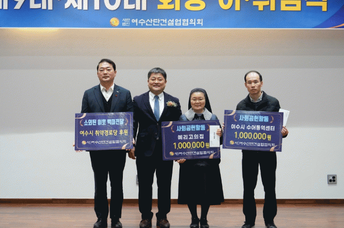 [¹Ìµð¾îÀü³² ÀüÇü¼º ±âÀÚ]¿©¼ö½Ã´Â (»ç)¿©¼ö»ê´Ü°Ç¼³¾÷ÇùÀÇȸ(ȸÀå Á¤¼ºÈ£)°¡ Áö³ 22ÀÏ Á¦9¡¤10´ë ȸÀå ÀÌÃëÀӽĿ¡¼ °ü³» Ãë¾à º¹Áö½Ã¼³À» À§ÇØ ÈÄ¿ø±Ý°ú ¹é¹Ì µî ¾à 1õ 7¹é¿©¸¸ ¿ø »ó´çÀÇ ÈÄ¿ø±ÝǰÀ» Àü´ÞÇϸç Áö¿ª»çȸ¿¡ ³ª´®À» ½Çõ¡¦