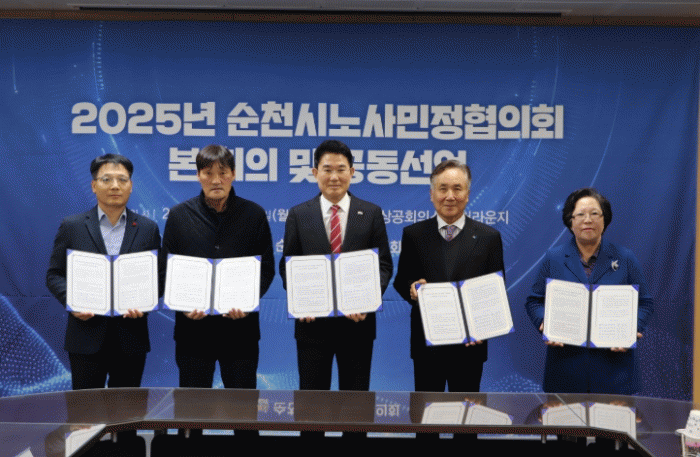 [¹Ìµð¾îÀü³² ÀÓ¼º¿Ï ±âÀÚ]¼øÃµ½Ã°¡ Áö³ 22ÀÏ ¼øÃµ»ó°øÈ¸ÀǼҿ¡¼ ¡®2025³â ¼øÃµ½Ã ³ë»ç¹ÎÁ¤ÇùÀÇȸ¡¯¸¦ °³ÃÖÇϰí, Áö¿ª ³ëµ¿½ÃÀå Çö¾È°ú ÇâÈÄ »ç¾÷ ¹æÇâÀ» ³íÀÇÇß´Ù. À̳¯ ÇùÀÇȸ¿¡´Â ¼øÃµ½ÃÀåÀ» ºñ·ÔÇØ ³ëµ¿°è, °æ¿µÀÚ´Üü, ½Ã¹Î´Üü µî¡¦
