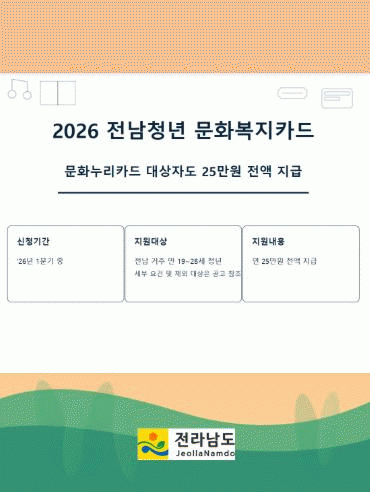 [¹Ìµð¾îÀü³² Á¦°¥´ëÁ¾ ±âÀÚ]Àü¶ó³²µµ´Â 2026³âºÎÅÍ Àü³² û³â ¹®Èº¹ÁöÄ«µå »ç¾÷ ÃßÁø ½Ã °æÁ¦Àû Ãë¾à °èÃþ(±âÃÊ»ýȰ¼ö±ÞÀÚ¡¤Â÷»óÀ§°èÃþ)ÀÌ ¼öÇý¸¦ ¹Þ´Â ¹®È´©¸®Ä«µå Áö±ÞÀÚ¿¡°Ôµµ 25¸¸ ¿ø Àü¾×À» Áö±ÞÇÑ´Ù°í ¹àÇû´Ù. Àü³²Ã»³â ¹®Èº¹Áö¡¦