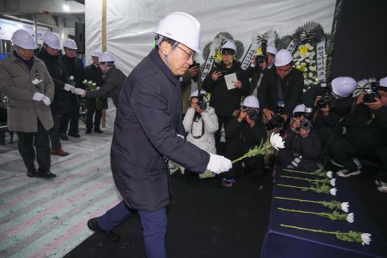 [¹Ìµð¾îÀü³² Á¦°¥´ëÁ¾ ±âÀÚ]°±âÁ¤ ±¤ÁÖ±¤¿ª½ÃÀåÀº 11ÀÏ Çö´ë»ê¾÷°³¹ß ¾ÆÆÄÆ® ½ÅÃà°ø»ç ºØ±«»ç°í 3Áֱ⸦ ¸Â¾Æ ¡°Èñ»ýµÇ½Å ºÐµé¿¡ ´ëÇÑ ¾ÖµµÀÇ ¸¶À½, À¯°¡Á·µé¿¡ ´ëÇÑ À§·ÎÀÇ ¸¶À½, ¿ì¸® »çȸ ¾ÈÀü¿¡ ´ëÇÑ ´ÙÁüÀ» ÀØÁö ¾Ê¾Æ¾ß ÇÑ´Ù¡±¸ç ¾È¡¦
