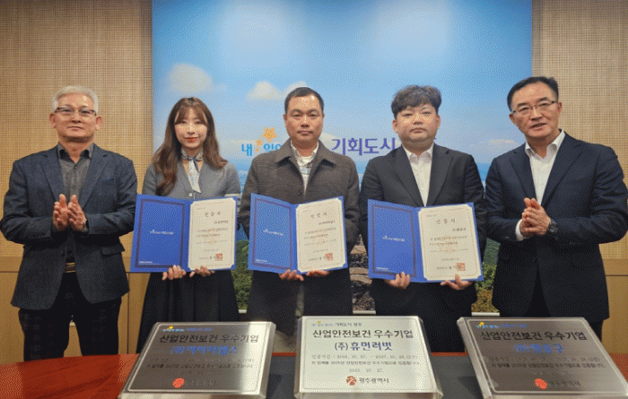 [¹Ìµð¾îÀü³² Á¦°¥´ëÁ¾ ±âÀÚ]±¤ÁÖ±¤¿ª½Ã´Â 18ÀÏ ½Ãû ¿µ»óȸÀǽǿ¡¼ ¡®2025³â ±¤Áֽà »ê¾÷¾ÈÀüº¸°Ç ¿ì¼ö±â¾÷¡¯ 3°³»ç¸¦ ¼±Á¤, ÀÎÁõ¼¿Í ÇöÆÇÀ» ¼ö¿©Çß´Ù. ¡®»ê¾÷¾ÈÀüº¸°Ç ¿ì¼ö±â¾÷ ÀÎÁõ»ç¾÷¡¯Àº ±¤ÁÖÁö¿ª ¼Ò±Ô¸ð ¹Î°£»ç¾÷ÀåÀÇ »ê¾÷¾ÈÀü ¡¦