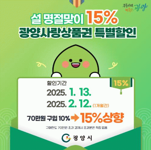 [¹Ìµð¾îÀü³² ÀÓ¼º¿Ï ±âÀÚ]±¤¾ç½Ã´Â ¼³À» ¾ÕµÎ°í ¹Î»ý¾ÈÁ¤ ¹× ¼Òºñ ÁøÀÛÀ» À§ÇØ ¡®±¤¾ç»ç¶û»óǰ±Ç¡¯À» ÇѽÃÀûÀ¸·Î 15% ÇÒÀÎµÈ ±Ý¾×¿¡ ÆÇ¸ÅÇÑ´Ù°í 10ÀÏ ¹àÇû´Ù. ÇöÀç ±¤¾ç»ç¶û»óǰ±Ç 1ÀÎ´ç ±¸¸Å Çѵµ´Â ¿ù 70¸¸ ¿øÀ̰í, ÃæÀüÇü Ä«µå·Î °á¡¦
