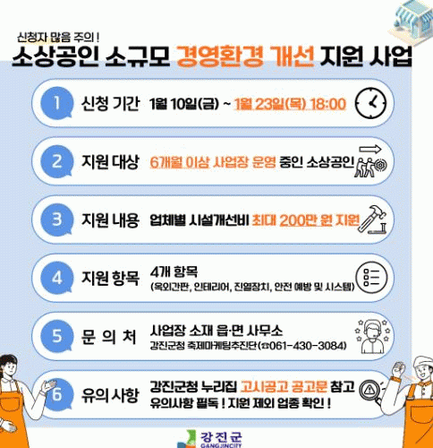 [¹Ìµð¾îÀü³² °í±Ô¼® ±âÀÚ]°Áø±ºÀº ¼Ò»ó°øÀεéÀÇ °æ¿µ ¿©°ÇÀ» °³¼±ÇÏ°í °æÀï·ÂÀ» °ÈÇϱâ À§ÇÑ 2025³â¿¡µµ "¼Ò»ó°øÀÎ ¼Ò±Ô¸ð °æ¿µÈ¯°æ °³¼± Áö¿ø»ç¾÷"À» 1¿ù 10ÀϺÎÅÍ ½ÃÇàÇÑ´Ù°í ¹àÇû´Ù. ÇØ´ç »ç¾÷ÀÇ ÁÖ¿ä ³»¿ëÀº ¡ãÁö¿ø ±Ý¾×(°ø±Þ°¡¾×¡¦