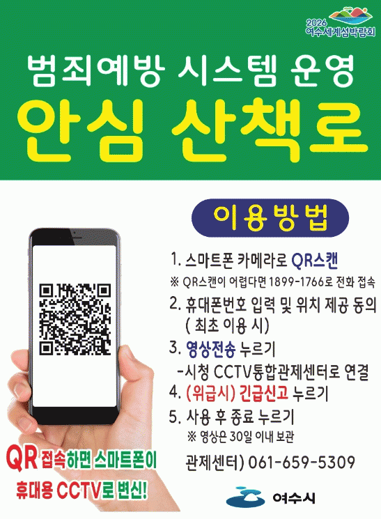[¹Ìµð¾îÀü³² ÀüÇü¼º ±âÀÚ]¿©¼ö½Ã°¡ CCTV »ç°¢Áö´ë ÇØ¼Ò¸¦ À§ÇØ ±¸ºÀ»ê¡¤°í¶ô»ê ÀÏ¿ø¿¡ ¡®»êÃ¥·Î ¹üÁË¿¹¹æ½Ã½ºÅÛ¡¯À» ±¸ÃàÇϰí 1¿ùºÎÅÍ ¿î¿µÇϰí ÀÖ´Ù. Àü³² ÃÖÃÊ·Î ±¸ÇöµÇ´Â ¡®»êÃ¥·Î ¹üÁË¿¹¹æ½Ã½ºÅÛ¡¯Àº °³ÀÎ ½º¸¶Æ®ÆùÀ» À̵¿Çü CCTV·Î¡¦