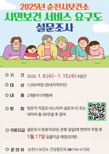 [¹Ìµð¾îÀü³² ÀÓ¼º¿Ï ±âÀÚ]¼øÃµ½Ã´Â 2025³â Áö¿ª»çȸ ÅëÇհǰÁõÁø »ç¾÷ °èȹ ¼ö¸³½Ã ½Ã¹ÎµéÀÌ ¹Ù¶ó´Â º¸°Ç ¼ºñ½º¸¦ ¹Ý¿µÇϱâ À§ÇØ ¡®2025 ÅëÇհǰÁõÁø °Ç°¿ä±¸µµ Á¶»ç¡¯¸¦ ¿À´Â 15ÀϱîÁö ½Ç½ÃÇÑ´Ù°í ¹àÇû´Ù. À̹ø Á¶»ç´Â ½Ã¹Î, °ø¹«¿ø¡¦