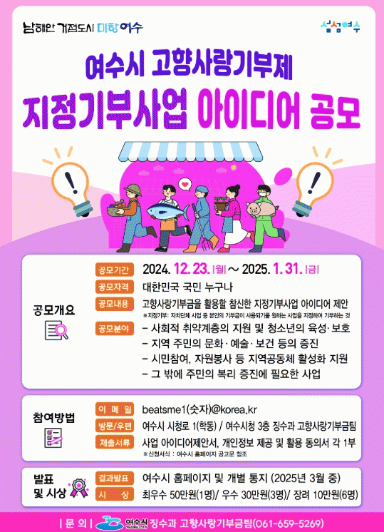 [¹Ìµð¾îÀü³² ÀüÇü¼º ±âÀÚ]¿©¼ö½Ã´Â °íÇâ»ç¶û±âºÎÁ¦¸¦ ÅëÇØ ¸ðÀÎ ±âºÎ±ÝÀ» °¡Ä¡ ÀÖ°Ô È°¿ëÇϰíÀÚ ¿À´Â 31ÀϱîÁö ¡®°íÇâ»ç¶û±âºÎÁ¦ ÁöÁ¤±âºÎ»ç¾÷ ¾ÆÀ̵ð¾î °ø¸ðÀü¡¯À» ÁøÇàÇÑ´Ù. °ø¸ð ºÐ¾ß´Â ¡ã»çȸÀû Ãë¾à°èÃþÀÇ Áö¿ø ¹× û¼Ò³â À°¼º¡¤º¸¡¦
