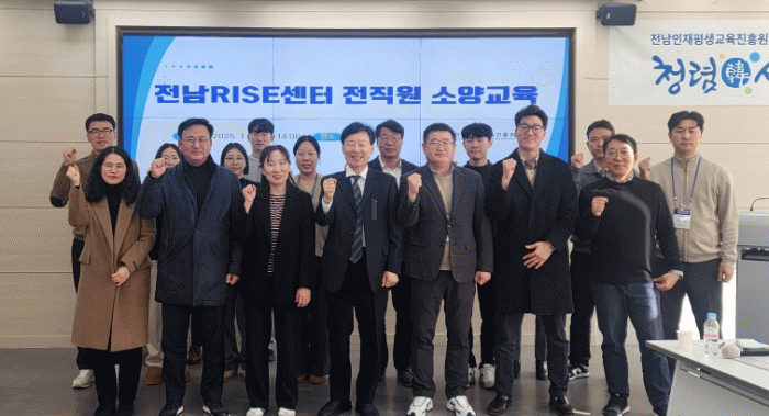 [¹Ìµð¾îÀü³² Á¦°¥´ëÁ¾ ±âÀÚ]Àü¶ó³²µµÀÎÀçÆò»ý±³À°ÁøÈï¿øÀº 3ÀÏ Àü³²RISE¼¾ÅÍ Àü Á÷¿øÀ» ´ë»óÀ¸·Î ¿ª·®°È ±³À°À» ½Ç½ÃÇß´Ù. À̹ø ±³À°Àº 2025³â RISE»ç¾÷ÀÇ º»°ÝÀûÀÎ ÃßÁø¿¡ ¾Õ¼ ±âº»¼Ò¾ç ÇÔ¾ç°ú ¼Ò¼Ó°¨ ºÎ¿©¸¦ ÅëÇÑ Á¶Á÷ ÀûÀÀ·Â Çâ»ó¡¦