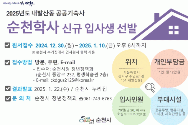 [¹Ìµð¾îÀü³² ÀÓ¼º¿Ï ±âÀÚ]¼øÃµ½Ã´Â ¼öµµ±Ç Àα٠´ëÇб³¿¡ ÀçÇÐ ÁßÀÎ ¼øÃµ Ãâ½Å ´ëÇÐ(¿ø)»ýµé¿¡°Ô ¾ÈÁ¤ÀûÀÌ°í µû¶æÇÑ º¸±ÝÀÚ¸®¸¦ Á¦°øÇϱâ À§ÇØ ¼øÃµÇÐ»ç ½Å±Ô ÀÔ»ç»ýÀ» ¿À´Â 10ÀϱîÁö ¸ðÁýÇÑ´Ù. À̹ø ¸ðÁý ÀοøÀº ÃÑ 70¸íÀ¸·Î ³²ÀÚ 26¸í¡¦