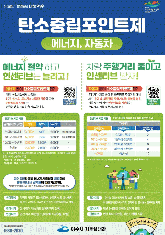 [¹Ìµð¾îÀü³² ÀüÇü¼º ±âÀÚ]¿©¼ö½Ã°¡ ½Ã¹ÎµéÀÇ ÀÚ¹ßÀûÀÎ ¿¡³ÊÁö Àý¾à ½ÇõÀ» ÅëÇØ ¿ÃÇØ »ó¹Ý±â 2,275¿© ÅæÀÇ ¿Â½Ç°¡½º¸¦ °¨ÃàÇϰí ź¼ÒÁ߸³Æ÷ÀÎÆ® 1¾ï 3õ¿©¸¸ ¿øÀ» Áö±ÞÇß´Ù. ź¼ÒÁ߸³Æ÷ÀÎÆ®Á¦´Â °¡Á¤, »ó°¡ µî¿¡¼ Àü±â, »ó¼öµµ, µµ½Ã°¡¡¦