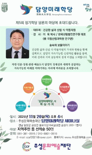 [¹Ìµð¾îÀü³² Á¦°¥´ëÁ¾ ±âÀÚ]Ãß¼º¹®È¿¹¼úÀç´ÜÀÌ ¿î¿µÇÏ´Â ´ã¾ç¹Ì·¡ÇдçÀº ¿À´Â 11¿ù 20ÀÏ ¿ÀÈÄ 7½Ã, ´ã¾ç±º ±Ý¼º¸é¿¡ À§Ä¡ÇÑ ´ã¾ç¹Ì·¡ÇÐ´ç ¼¼¹Ì³ª½Ç¿¡¼ Á¦5ȸ Á¤±âÇÐ´ç ´ã·Ð¸¶´çÀ» °³ÃÖÇÑ´Ù. À̹ø ´ã·Ð¸¶´çÀÇ ´ëÁÖÁ¦´Â ¡°°Ç°ÇÑ »î°ú ¡¦