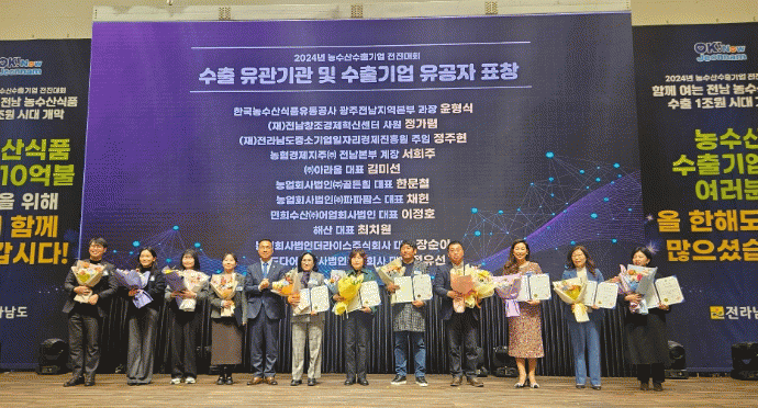 [¹Ìµð¾îÀü³² Á¦°¥´ëÁ¾ ±âÀÚ]Àü¶ó³²µµ´Â 26ÀÏ ³²¾Ç¿¡¼ ³ó¼ö»ê½Äǰ ¼öÃâ 1Á¶ ¿ø ´Þ¼ºÀ» ±â³äÇØ ³ó¼ö»ê ¼öÃâ±â¾÷, À¯°ü±â°ü °ü°èÀÚ µî 200¿© ¸íÀÌ Âü¼®ÇÑ °¡¿îµ¥ 2024 ³ó¼ö»ê½Äǰ ¼öÃâ±â¾÷ ÀüÁø´ëȸ¸¦ ¿¾î 2025³â ¼öÃâ È®´ë Àü·«À» °øÀ¯Çß¡¦