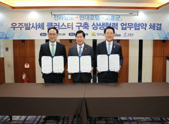 [¹Ìµð¾îÀü³² Á¦°¥´ëÁ¾ ±âÀÚ]°íÈﱺÀº 20ÀÏ ¼¿ï ÄÚ¸®¾Æ³ªÈ£ÅÚ »çÆÄÀ̾îȦ¿¡¼ Àü³²µµ¡¤Çö´ë·ÎÅÛ°ú ¿ìÁֹ߻çü »ê¾÷ Ŭ·¯½ºÅÍÀÇ ¼º°øÀû ±¸ÃàÀ» À§ÇÑ 3ÀÚ °£ ¾÷¹«Çù¾àÀ» ü°áÇß´Ù°í ¹àÇû´Ù. À̳¯ Çù¾à½Ä¿¡´Â °ø¿µ¹Î °íÈﱺ¼ö, ±è¿µ·Ï µµÁö¡¦
