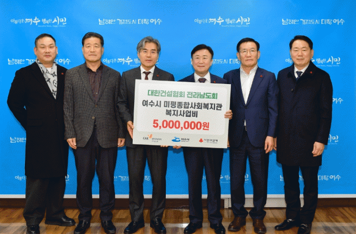 [¹Ìµð¾îÀü³² ÀüÇü¼º ±âÀÚ]´ëÇѰǼ³Çùȸ Àü³²µµÈ¸¿Í ¿©¼ö½ÃÁ¾ÇհǼ³ÇùÀÇȸ°¡ ¿¬¸»À» ¸Â¾Æ ¿©¼ö½Ã ¹ÌÆòÁ¾ÇÕ»çȸº¹Áö°ü »ç¾÷ºñ·Î °¢ 500¸¸ ¿ø¾¿ ¼º±Ý 1õ¸¸ ¿øÀ» ±âŹÇß´Ù. ¿©¼ö½Ã¿¡ µû¸£¸é Áö³ 16ÀÏ ½ÃÀå½Ç¿¡¼ ¿¸° ¼º±Ý Àü´Þ½Ä¿¡ Á¤±â¸í¡¦