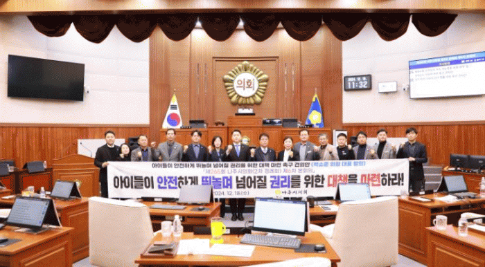[¹Ìµð¾îÀü³² Á¦°¥´ëÁ¾ ±âÀÚ]³ªÁÖ½ÃÀÇȸ´Â ¹Ú¼ÒÁØ ÀÇ¿øÀÌ ´ëÇ¥ ¹ßÀÇÇÑ ¡®¾ÆÀ̵éÀÌ ¾ÈÀüÇÏ°Ô ¶Ù³î¸ç ³Ñ¾îÁú ±Ç¸®¸¦ À§ÇÑ ´ëÃ¥ ¸¶·Ã Ã˱¸ °ÇÀǾȡ¯À» 18ÀÏ Á¦265ȸ ³ªÁÖ½ÃÀÇȸ(Á¦2Â÷ Á¤·Êȸ) Á¦6Â÷ º»È¸ÀÇ¿¡¼ ÀǰáÇß´Ù. ³ªÁÖ½ÃÀÇȸ´Â °Ç¡¦