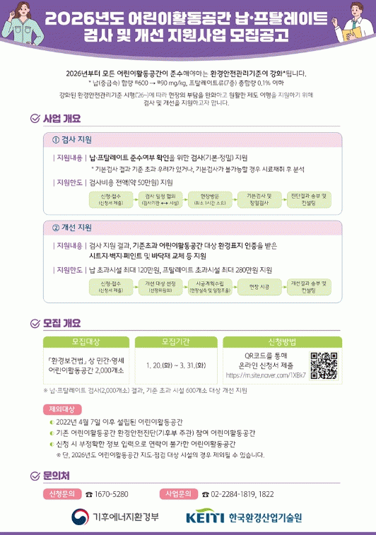 [¹Ìµð¾îÀü³² ÀüÇü¼º ±âÀÚ]¿©¼ö½Ã´Â ȯ°æ¾ÈÀü°ü¸®±âÁØ °È¿¡ µû¶ó ¡®2026³âµµ ¾î¸°ÀÌȰµ¿°ø°£ ³³¡¤ÇÁÅ»·¹ÀÌÆ® °Ë»ç ¹× °³¼± Áö¿ø»ç¾÷¡¯°ú °ü·ÃÇØ °ü³» ¾î¸°ÀÌÁý¿¡ ±âÇÑ ³» ½ÅûÀ» ´çºÎÇß´Ù. ±âÈÄ¿¡³ÊÁöȯ°æºÎ ÁÖ°üÀ¸·Î ÃßÁøµÇ´Â À̹ø »ç¡¦
