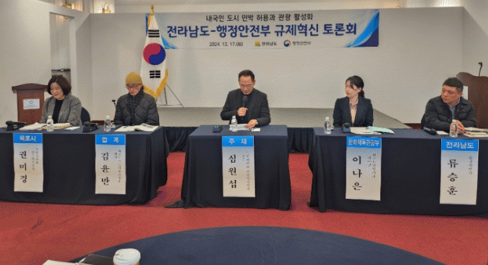 [¹Ìµð¾îÀü³² Á¦°¥´ëÁ¾ ±âÀÚ]Àü¶ó³²µµ´Â 17ÀÏ ¸ñÆ÷ ¿À¼ÇÈ£ÅÚ¿¡¼ ¡®³»±¹ÀÎ µµ½Ã¹Î¹Ú Çã¿ë°ú °ü±¤È°¼ºÈ¡¯¸¦ ÁÖÁ¦·Î ±ÔÁ¦°³¼± Åä·Ðȸ¸¦ °³ÃÖÇß´Ù. ÇàÁ¤¾ÈÀüºÎ¿Í Àü³²µµ¡¤¸ñÆ÷½Ã°¡ °øµ¿ °³ÃÖÇÏ°í ¹®ÈüÀ°°ü±¤ºÎ, ¸ñÆ÷°Ô½ºÆ®ÇϿ콺Çùȸ µî ¡¦