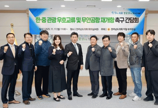 [¹Ìµð¾îÀü³² Á¦°¥´ëÁ¾ ±âÀÚ]Àü¶ó³²µµÀÇȸ ÀÌö ºÎÀÇÀå(´õºÒ¾î¹ÎÁִ硤¿Ïµµ1)Àº 11¿ù 17ÀÏ Àü¶ó³²µµÀÇȸ ȸÀǽǿ¡¼ ¡®ÇÑ¡¤Áß °ü±¤ ¿ìÈ£±³·ù ¹× ¹«¾È°øÇ× Àç°³Ç× Ã˱¸ °£´ãȸ¡¯¸¦ °³ÃÖÇϰí, Àü³²°ú Áß±¹ °£ °ü±¤ ¹× »ê¾÷ Çù·Â È®´ë¸¦ À§ÇÑ¡¦