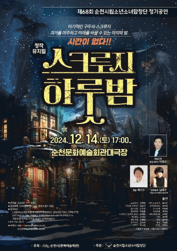 [¹Ìµð¾îÀü³² ÀÓ¼º¿Ï ±âÀÚ]¼øÃµ½Ã´Â ¿À´Â 14ÀÏ ¿ÀÈÄ 5½Ã, ¼øÃµ¹®È¿¹¼úȸ°ü ´ë±ØÀå¿¡¼ ¼øÃµ½Ã¸³¼Ò³âÇÕâ´ÜÀÇ Á¦68ȸ Á¤±â¿¬ÁÖȸ '½ºÅ©·çÁö ÇÏ·í¹ã'À» °ø¿¬ÇÑ´Ù°í ¹àÇû´Ù. À̹ø Á¤±â¿¬ÁÖȸ´Â Âû½º µðŲÁîÀÇ ¸íÀÛ ¡®Å©¸®½º¸¶½º ij·²¡¯À» À硦
