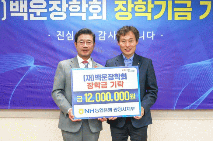 [¹Ìµð¾îÀü³² ÀÓ¼º¿Ï ±âÀÚ]±¤¾ç½Ã´Â 13ÀÏ ±¤¾ç½Ãû ½Ã¹Î Á¢°ß½Ç¿¡¼ ¿¸° ÀåÇбâ±Ý ±âŹ½Ä¿¡¼ NH³óÇù ±¤¾ç½ÃÁöºÎ°¡ Àç´Ü¹ýÀÎ ¹é¿îÀåÇÐȸ¿¡ 1,200¸¸ ¿øÀÇ ÀåÇбÝÀ» ±âŹÇß´Ù°í ¹àÇû´Ù. NH³óÇù ±¤¾ç½ÃÁöºÎ´Â °æÁ¦ÀûÀ¸·Î ¾î·Á¿î »óȲ¿¡ ³õÀΡ¦