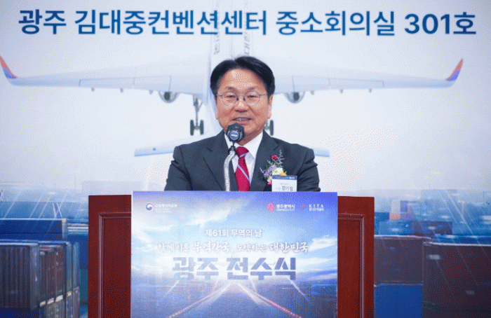 [¹Ìµð¾îÀü³² Á¦°¥´ëÁ¾ ±âÀÚ]°±âÁ¤ ±¤ÁÖ±¤¿ª½ÃÀåÀÌ 12ÀÏ ¡®Á¦61ȸ ¹«¿ªÀÇ ³¯¡¯À» ±â³äÇØ ¡®¼öÃâÀÇ Å¾ ¹× ¼öÃâÀ¯°ø Æ÷»ó¡¯À» Àü¼öÇϰí, ´ë³»¿ÜÀû »óȲÀ¸·Î Èûµç ±â¾÷À» °Ý·ÁÇß´Ù. °±âÁ¤ ½ÃÀåÀº Çà»ç Âü¼®¿¡ ¾Õ¼ À̳¯ ¿ÀÀü ¡®±ä±Þ ¹Î»ý¡¦