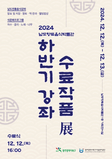 [¹Ìµð¾îÀü³² Á¦°¥´ëÁ¾ ±âÀÚ] ±¤Áֺϱ¸½Ã¼³°ü¸®°ø´ÜÀº 12¿ù 12ÀϺÎÅÍ 13ÀϱîÁö ÀÌÆ²°£ ³²µµÇâÅäÀ½½Ä¹Ú¹°°ü 1Ãþ ±âȹÀü½Ã½Ç¿¡¼ ÇϹݱâ ÀüÅëÀ½½Ä°Á ¹× ½Ä¹®ÈÇÁ·Î±×·¥ ¼ö°»ýµéÀÌ ¸¸µç ÀÛǰµé·Î ¼ö·áÀÛǰ Àü½Ãȸ¸¦ °³ÃÖÇÑ´Ù. À̹ø Àü½Ã¡¦