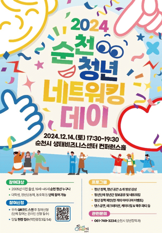 [¹Ìµð¾îÀü³² ÀÓ¼º¿Ï ±âÀÚ]¼øÃµ½Ã´Â ¿À´Â 14ÀÏ »ýźñÁî´Ï½º¼¾ÅÍ ÄÁÆÛ·±½ºÈ¦¿¡¼ û³â, °øµ¿Ã¼, ´ëÇлý µî ´Ù¾çÇÑ ºÐ¾ßÀÇ Ã»³âµéÀÌ ÇÔ²²ÇÏ´Â ¡®2024 ¼øÃµÃ»³â ³×Æ®¿öÅ· µ¥ÀÌ¡¯¸¦ °³ÃÖÇÑ´Ù. ¼øÃµÃ»³â°£ ±³·ù Ȱ¼ºÈ Áö¿øÀ» ¿äûÇÑ Ã»³âµéÀÇ¡¦