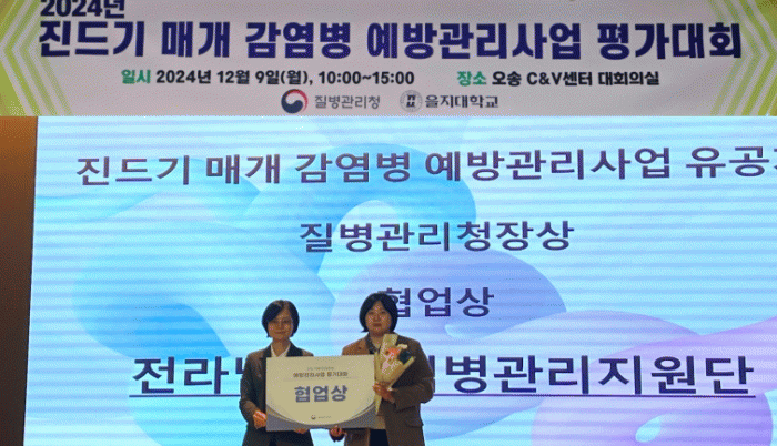 [¹Ìµð¾îÀü³² Á¦°¥´ëÁ¾ ±âÀÚ]Àü¶ó³²µµ´Â 9ÀÏ ÃæºÏ ¿À¼Û¿¡¼ ¿¸° Áúº´°ü¸®Ã»ÀÇ ¡®2024³â Áøµå±â ¸Å°³ °¨¿°º´ ¿¹¹æ°ü¸®»ç¾÷ Æò°¡´ëȸ¡¯¿¡¼ Àü±¹ ¿ì¼ö±â°üÀ¸·Î ¼±Á¤µÅ Áúº´°ü¸®Ã»Àå ±â°üǥâÀ» ¹Þ¾Ò´Ù. Æò°¡´Â ±¹°íº¸Á¶»ç¾÷À» Áö¿ø¹Þ´Â 10¡¦
