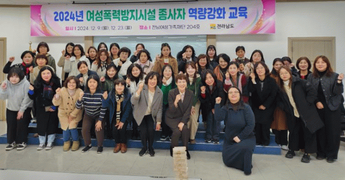 [¹Ìµð¾îÀü³² Á¦°¥´ëÁ¾ ±âÀÚ]Àü¶ó³²µµ´Â 9ÀÏ Àü³²¿©¼º°¡Á·Àç´Ü¿¡¼ ¿©¼ºÆø·Â ¹æÁö½Ã¼³ Á¾»çÀÚÀÇ Á÷¹« ´É·ÂÀ» Çâ»óÇÏ°í Æø·Â ÇÇÇØÀÚ¿¡°Ô Áú ³ôÀº ¼ºñ½º¸¦ Çϱâ À§ÇØ ¿ª·®°È ±³À°À» Çß´Ù. 2024³â Á¾»çÀÚ ¿ª·®°È ±³À°Àº Áö³ 5¿ù ¿©¼ºÆø¡¦