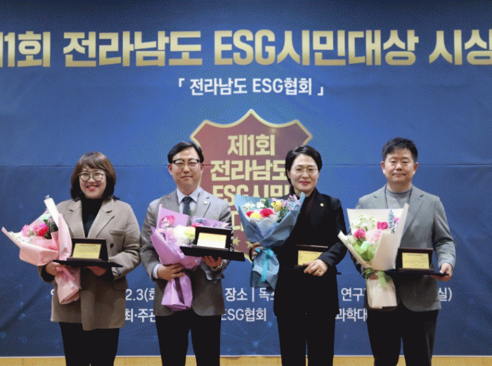 [¹Ìµð¾îÀü³² ÀüÇü¼º ±âÀÚ]Àü¶ó³²µµ ESGÇùȸ(±èÁ¤»ï ´ëÇ¥)´Â Áö³ 3ÀÏ ¡°Á¦1ȸ Àü³² ESG ½Ã¹Î´ë»ó ½Ã»ó½Ä¡±À» °³ÃÖÇÏ°í ±âÃÊÁö¹æÀÚÄ¡´Üü ÃÖÃÊ·Î ¡°ESG °æ¿µ Ȱ¼ºÈ Áö¿ø Á¶·Ê¡±¸¦ Á¦Á¤Çϰí Áß¼Ò±â¾÷ ESG ½Çõ ¹æ¾È ¿ë¿ªÀ» ½Ç½ÃÇÏ´Â µî Áö¡¦