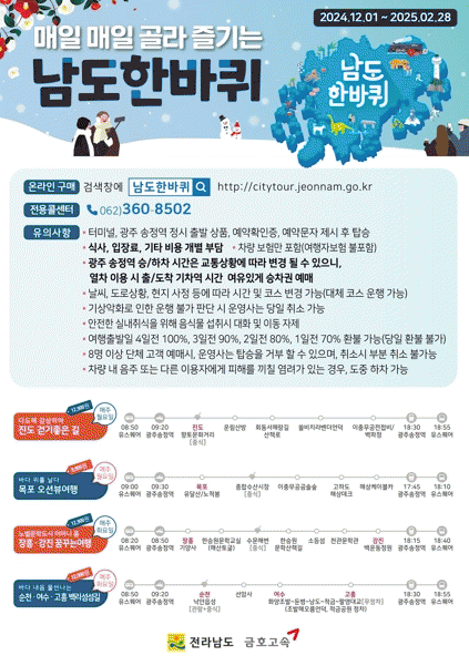 [¹Ìµð¾îÀü³² Á¦°¥´ëÁ¾ ±âÀÚ]Àü¶ó³²µµ °ü±¤Áö ¼øÈ¯¹ö½º ³²µµÇѹÙÄû°¡ Àü³²ÀÇ °Ü¿ïÀ» Áñ±æ ´Ù¾çÇÑ Å׸¶»óǰÀ» Áغñ, °ü±¤°´À» ¸ÂÀÌÇÑ´Ù. ³²µµÇѹÙÄû´Â Àü³²À» ã´Â °ü±¤°´ÀÌ ½±°í ÆíÇÏ°Ô µµ³» ´Ù¾çÇÑ °ü±¤Áö¸¦ Áñ±âµµ·Ï ±¤ÁÖ À¯½ºÄù¾î, KT¡¦