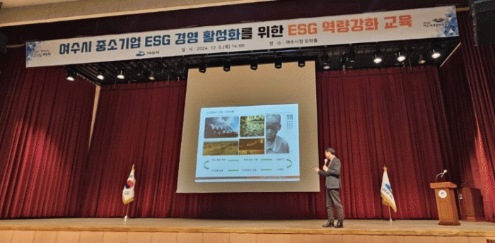 [¹Ìµð¾îÀü³² ÀüÇü¼º ±âÀÚ]¿©¼ö½Ã´Â Áö³ 5ÀÏ ¿©¼ö¹®ÈȦ¿¡¼ Áß¼Ò±â¾÷ ¹× °ø°ø±â°ü °ü°èÀÚ, ½Ã¹Î µîÀ» ´ë»óÀ¸·Î ¡®2024 ¿©¼ö½Ã ESG Ȱ¼ºÈ ¿ª·® °È ±³À°¡¯À» ÁøÇàÇß´Ù°í 6ÀÏ ¹àÇû´Ù. À̹ø ±³À°Àº ȯ°æ, »çȸ, Áö¹è±¸Á¶¸¦ ¶æÇÏ´Â ESG¸¦¡¦