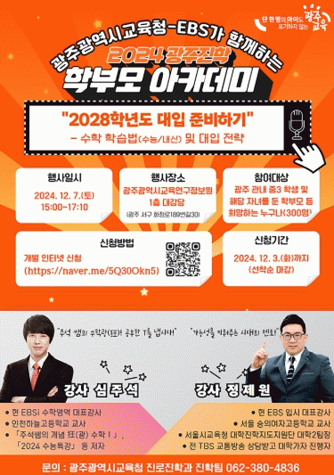[¹Ìµð¾îÀü³² Á¦°¥´ëÁ¾ ±âÀÚ]±¤Áֽñ³À°Ã»Àº ¿À´Â 7ÀÏ ¿ÀÈÄ 3½Ã ±¤ÁÖ±³À°¿¬±¸Á¤º¸¿ø 1Ãþ ´ë°´ç¿¡¼ EBS¿Í °øµ¿À¸·Î ¡®2024 ±¤ÁÖÁøÇÐ ÇÐºÎ¸ð ¾ÆÄ«µ¥¹Ì 6Â÷ °¿¬¡¯À» °³ÃÖÇÑ´Ù. À̹ø ¾ÆÄ«µ¥¹Ì´Â 2022 °³Á¤ ±³À°°úÁ¤ Àû¿ë, °í±³ÇÐÁ¡Á¦ Àü¸é¡¦