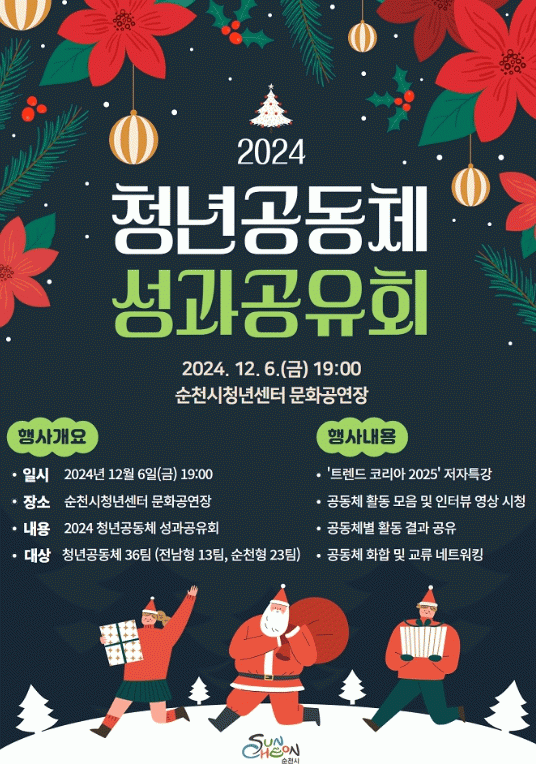 [¹Ìµð¾îÀü³² ÀÓ¼º¿Ï ±âÀÚ]¼øÃµ½Ã´Â û³âµéÀÌ ÁÖµµÇÑ ´Ù¾çÇÑ Áö¿ª Ȱµ¿µéÀÇ °á½ÇÀ» °øÀ¯ÇÏ°í ³ª´©´Â 2024 û³â°øµ¿Ã¼ ¼º°ú°øÀ¯È¸¸¦ ¿À´Â 6ÀÏ 19½Ã ¼øÃµ½Ãû³â¼¾ÅÍ¿¡¼ °³ÃÖÇÑ´Ù°í ¹àÇû´Ù. û³â°øµ¿Ã¼ Ȱ¼ºÈ»ç¾÷Àº û³âµéÀÌ ÁÖµµÀûÀ¸·Î ±â¡¦