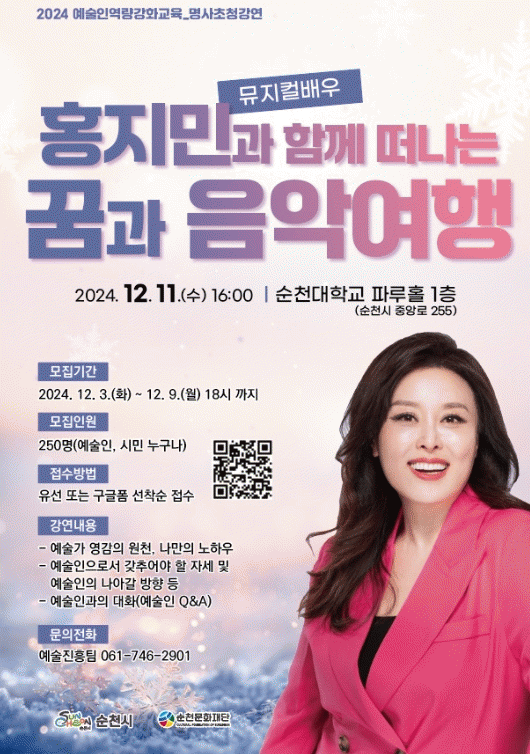 [¹Ìµð¾îÀü³² ÀÓ¼º¿Ï ±âÀÚ](Àç)¼øÃµ¹®ÈÀç´ÜÀº ¿À´Â 9ÀϱîÁö Áö¿ª¿¹¼úÀÎ ¿ª·®°È ±³À°ÀÇ ÀÏȯÀ¸·Î ÁøÇàµÇ´Â ¸í»ç ÃÊû °¿¬ Âü¿©ÀÚ¸¦ ¸ðÁýÇÑ´Ù°í ¹àÇû´Ù. À̹ø ¸í»ç ÃÊû °¿¬Àº ¿¹¼úÀÎÀÇ ¾ÈÁ¤ÀûÀÎ ¿¹¼úȰµ¿À» À§ÇÑ ½Ç¹« ¿ª·®°È ÇÁ·Î±×¡¦