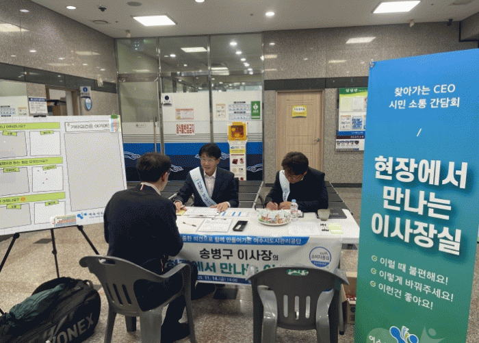 [¹Ìµð¾îÀü³² ÀüÇü¼º ±âÀÚ]¿©¼ö½Ãµµ½Ã°ü¸®°ø´Ü(ÀÌ»çÀå ¼Ûº´±¸)Àº ½Ã¹Î°ú Á÷Á¢ ¼ÒÅëÇϱâ À§ÇÑ ÇöÀå ÇàÁ¤ÀÇ ¹®À» ¿¾ú´Ù°í ¹àÇû´Ù. Áö³ 11¿ù 13ÀÏ Áø³²¼ö¿µÀå°ú Àå¾ÖÀα¹¹ÎüÀ°¼¾ÅÍ, 14ÀÏ ¸Á¸¶±¹¹ÎüÀ°¼¾ÅÍ¿¡¼ ã¾Æ°¡´Â CEO ½Ã¹Î ¼ÒÅë °£´ã¡¦