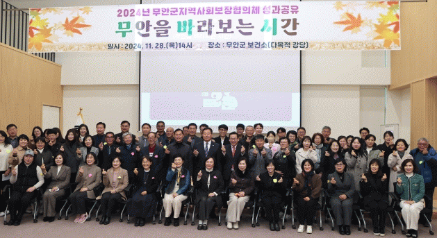 [¹Ìµð¾îÀü³² ±èÆÇ±¹ ±âÀÚ]¹«¾È±º Áö¿ª»çȸº¸ÀåÇùÀÇü´Â Áö³ 28ÀÏ ºÐ°úÀ§¿ø°ú À¾¸éÇùÀÇü À§¿ø µî 80¿© ¸íÀÌ Âü¼®ÇÑ °¡¿îµ¥ º¸°Ç¼Ò ´Ù¸ñÀû °´ç¿¡¼ ¹«¹Ù½Ã(¹«¾ÈÀ» ¹Ù¶óº¸´Â ½Ã°£) ¼º°úº¸°íȸ¸¦ °³ÃÖÇß´Ù. À̹ø ¼º°úº¸°íȸ´Â Áö¿ª ºÐ°ú ¡¦