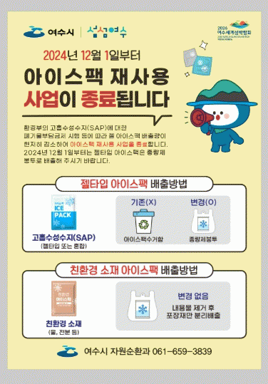 [¹Ìµð¾îÀü³² ÀüÇü¼º ±âÀÚ]¿©¼ö½Ã´Â Á© ŸÀÔ(°íÈí¼ö¼º¼öÁö) ¾ÆÀ̽ºÆÑ Àç»ç¿ë »ç¾÷À» ¿À´Â 12¿ù 1ÀϺÎÅÍ Áß´ÜÇÑ´Ù°í ¹àÇû´Ù. ½Ã´Â ±×µ¿¾È À¾¸éµ¿ Áֹμ¾ÅÍ¿Í °øµ¿ÁÖÅà µî¿¡ ¼ö°ÅÇÔÀ» ¼³Ä¡ÇØ ¾ÆÀ̽ºÆÑÀ» ¼ö°ÅÇϰí Áö³ 2021³â 6¿ùºÎÅÍ Àç»ç¡¦
