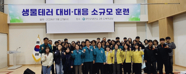 [¹Ìµð¾îÀü³² ±èÆÇ±¹ ±âÀÚ]Àü³² ¹«¾È±ºÀº Áö³ 27ÀÏ º¸°Ç¼Ò ´Ù¸ñÀû °´ç¿¡¼ º¸°Ç¼Ò Á÷¿ø°ú ¼Ò¹æ, °æÂû, °øÇ×°Ë¿ª¼Ò Á÷¿ø µî 100¿©¸íÀÌ Âü¿©ÇÑ °¡¿îµ¥ »ý¹°Å×·¯ ´ëºñ Ãʵ¿ ´ëÀÀ ±³À° ¹× ¼Ò±Ô¸ð ÈÆ·ÃÀ» ½Ç½ÃÇß´Ù. »ý¹°Å×·¯´Â ¹ÙÀÌ·¯½º, ¼¼¡¦