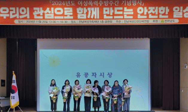 [¹Ìµð¾îÀü³² Á¦°¥´ëÁ¾ ±âÀÚ]Àü¶ó³²µµ´Â ¿©¼ºÆø·Â Ãß¹æÁÖ°£(11¿ù 25 ºÎÅÍ 12¿ù 10ÀÏ)À» ¸Â¾Æ 28ÀÏ Àü³²¿©¼º°¡Á·Àç´Ü¿¡¼ ¿©¼ºÆø·Â ¾ø´Â »çȸ ½Çõ °ø°¨´ë È®»êÀ» À§ÇÑ ´Ùä·Î¿î ±â³äÇà»ç¸¦ °³ÃÖÇß´Ù. ¿©¼ºÆø·ÂÃß¹æÁÖ°£ ±â³äÇà»ç´Â Àü³²¿©¡¦