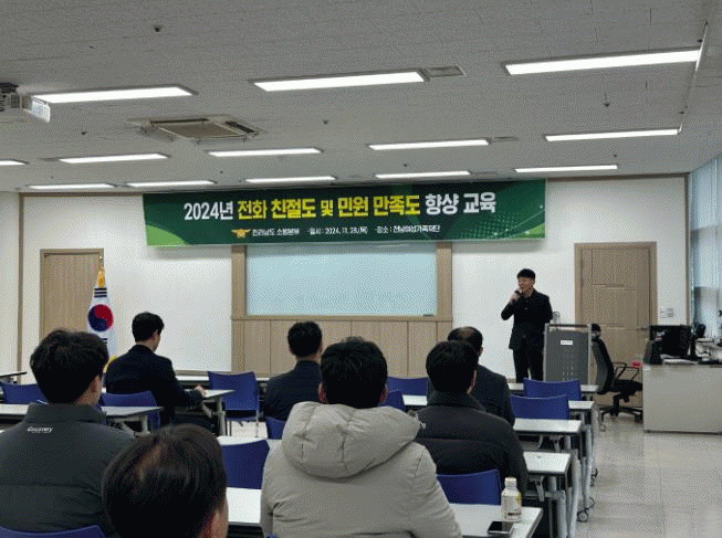 [¹Ìµð¾îÀü³² Á¦°¥´ëÁ¾ ±âÀÚ]Àü³²¼Ò¹æº»ºÎ°¡ ¼Ò¹æº»ºÎ ¹× °¢ ¼Ò¹æ¼ ¹Î¿ø¡¤Ã»·Å ´ã´çÀÚ 77¸íÀ» ´ë»óÀ¸·Î ÀüÈ Ä£Àýµµ ¹× ¹Î¿ø ¸¸Á·µµ Çâ»ó ±³À°À» ½Ç½ÃÇß´Ù. À̹ø ±³À°Àº 26ÀÏ ¼øÃµ¸¸»ýű³À°¿ø(¼øÃµ), 28ÀÏ Àü³²¿©¼º°¡Á·Àç´Ü(¹«¾È)¿¡¼ ¡¦